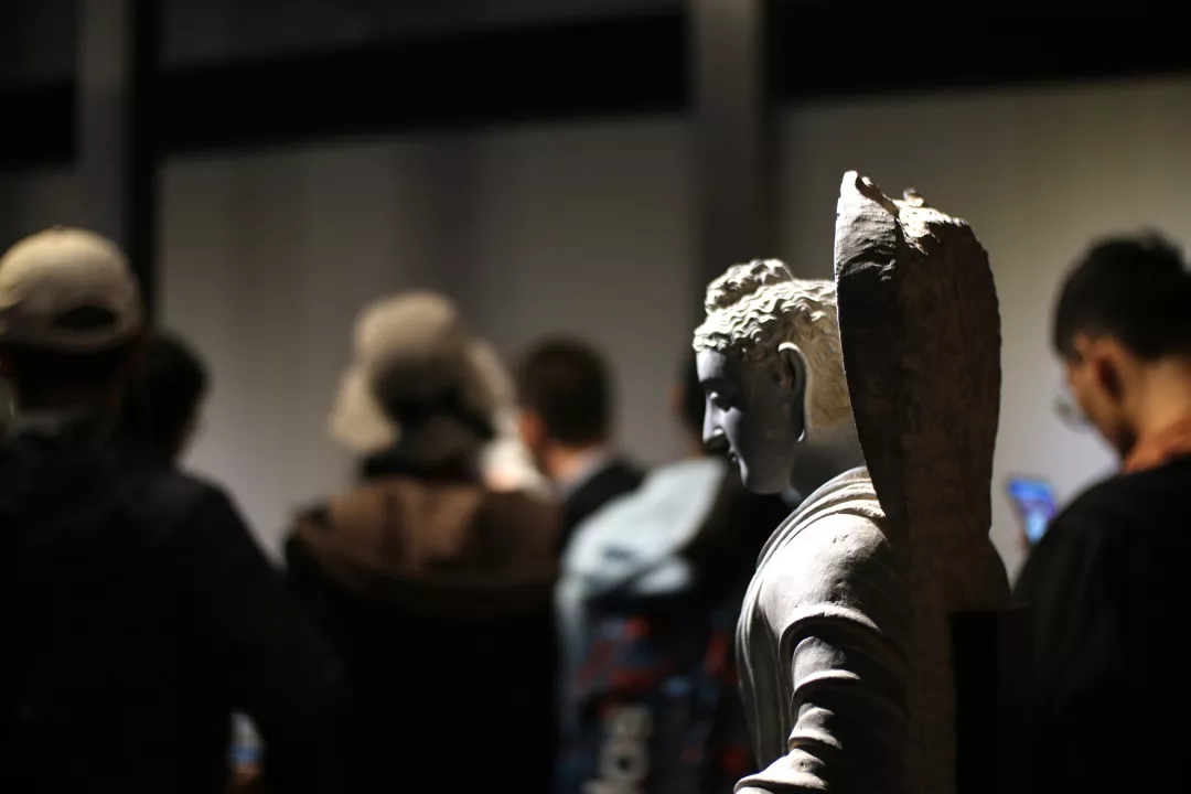还有一些文物,如赫拉克勒斯头像、阿特拉斯像等,都与希腊神话有关。郭老师带领大家回顾了课堂上讲过的古希腊雕塑艺术风格,通过分析人物的姿势和神态,揭示了艺术创作中“选取最富于孕育性的顷刻”的要义。