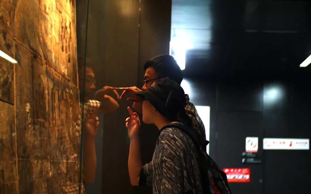 曲江艺术博物馆展览众多。大家首先参观了“色挂形象穷神变——中国古代壁画源流”壁画展。这是世界范围内唯一一个用壁画描述中国古代绘画史的展览,弥补了纸本国画作品仅存中国封建社会下半段的缺憾。在讲解老师的带领下,我们穿过幽暗的通道,仔细观赏了灯光照射下的一幅幅记录着先民丰富想象力的壁画。独特的线条、色块,让我们感受到眼前展现的中国绘画史也是多民族融合的历史。