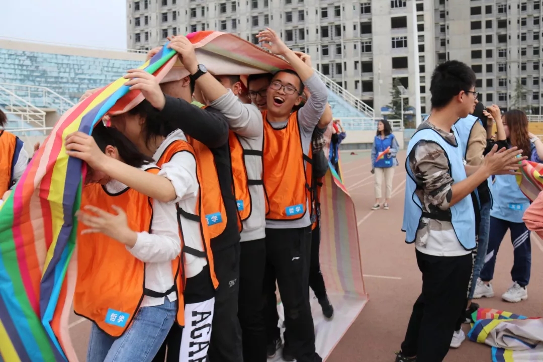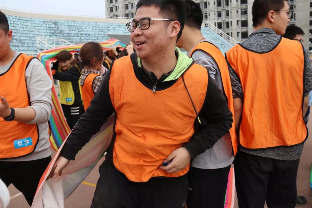 启动仪式结束后,各院系学生代表到西操场参加综合素质拓展活动,437必赢会员中心派出 8 位同学和2 位裁判0.8 名同学组成冥想者代表队,队伍名称体现了哲院学子们冷静,稳重的品质,也蕴含了稳中就进,智慧取胜的目标。队员们展露出自信的笑颜,以饱满的热情迎接这场趣味与挑战并存的比赛